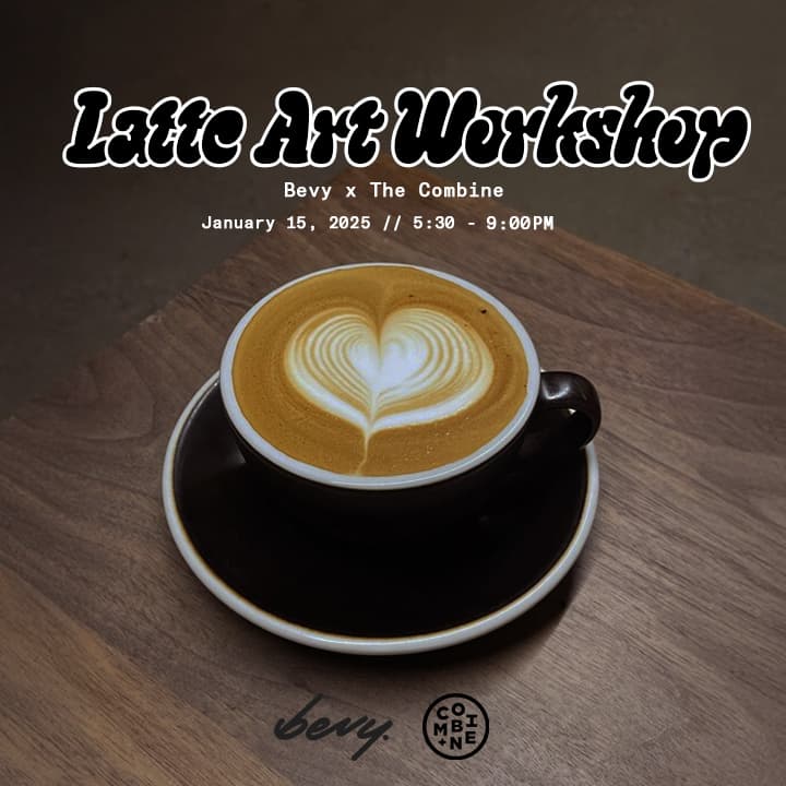 Brought to you by Bevy Cafe & The Combine, join us for an immersive workshop where you'll master the basics of barista skills and latte art. Lead by seasoned Bevy barista, Zhongqi, you'll discover how to create delicious, specialty beverages! Whether you're new to coffee or a seasoned enthusiast, this class is designed to help you build the skills to craft the perfectly crafted and designed latte, cappuccino or tea latte. All levels of experience welcome.